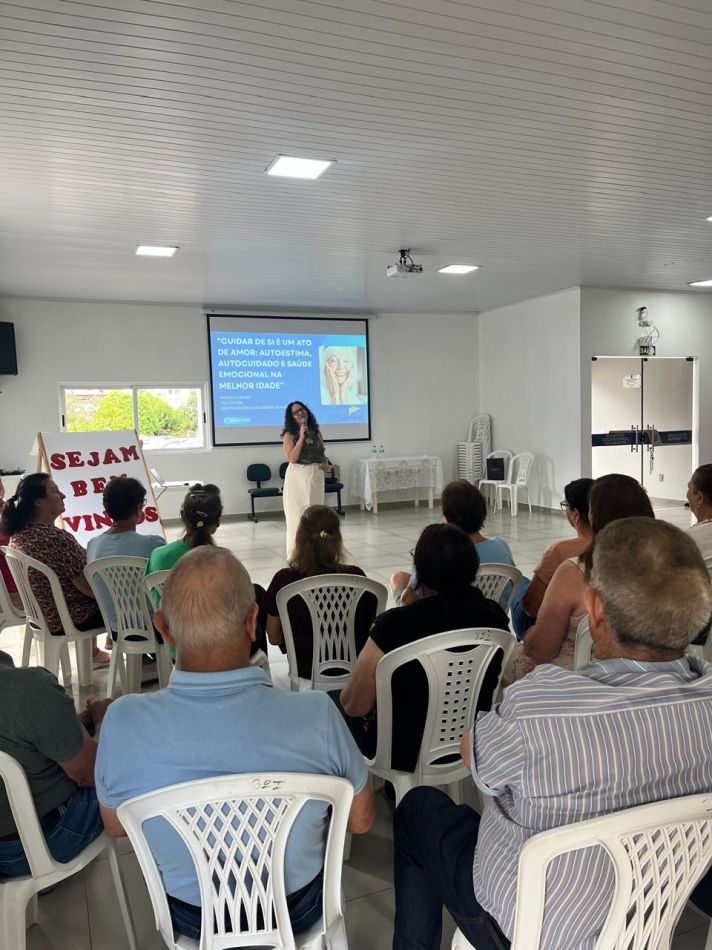 Durante o encontro, também foi realizada uma importante palestra com o tema “Cuidar de si é um ato de amor: autoestima, autocuidado e saúde emocional na melhor idade”, promovendo reflexão sobre a importância do cuidado com a saúde emocional e a valorização da qualidade de vida.